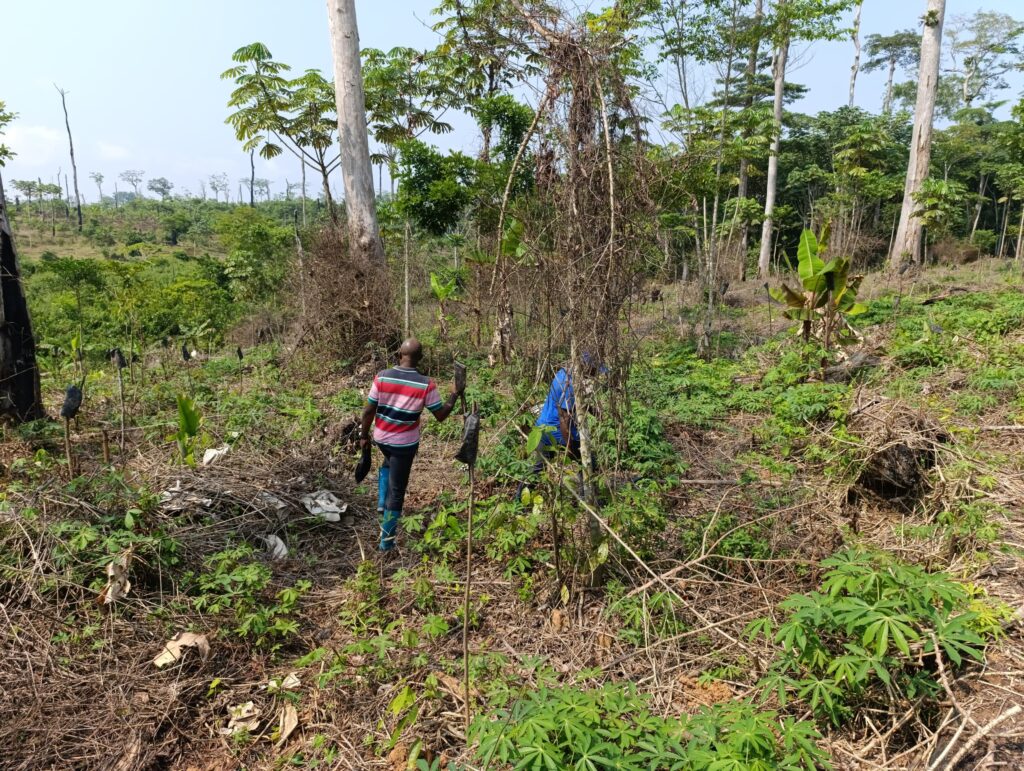 En effet, après une période intensive de travail que certains n’ont pas hésité à qualifier de « travaux forcés » tant l’implication fut totale, les résultats obtenus dépassent toutes les attentes. Les images ci-dessous parlent d’elles-mêmes : plusieurs hectares de cacao ont déjà été plantés avec soin, selon des méthodes rigoureuses et respectueuses de l’environnement. Le rythme soutenu des travaux témoigne non seulement d’une organisation exemplaire, mais aussi d’une vision porteuse d’espérance pour l’avenir de cette mission agricole.